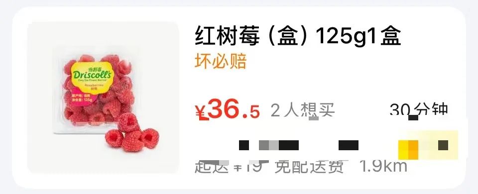 一盒125g的树莓最高售价36.5元